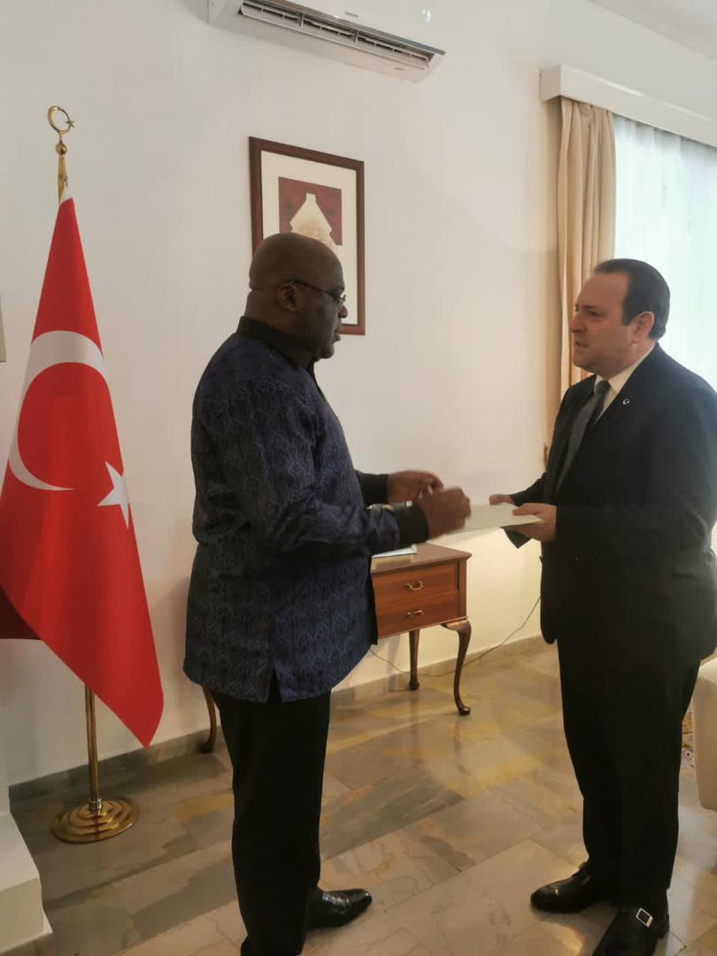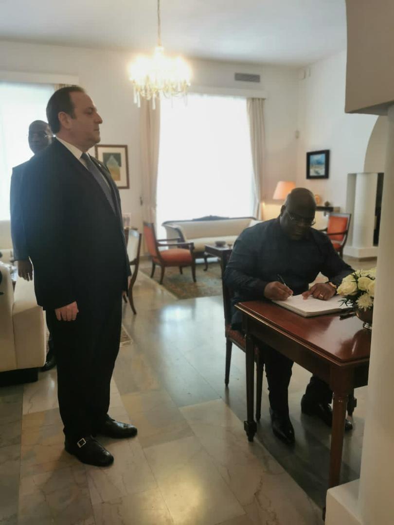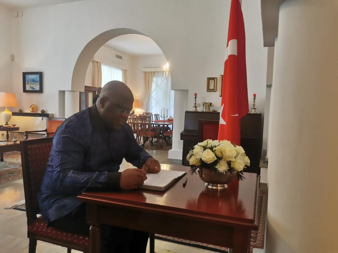 Kongo Demokratik Cumhuriyeti Cumhurbaşkanı Ekselansları Sayın Félix Tshisekedi bugün Büyükelçiliğimizi ziyaret ederek Türkiye’de yaşanan deprem felaketi için açılan taziye defterini imzaladı. Bu yüksek düzeyli ziyaret sözkonusu felaket karşısında Türk halkına moral verdi.